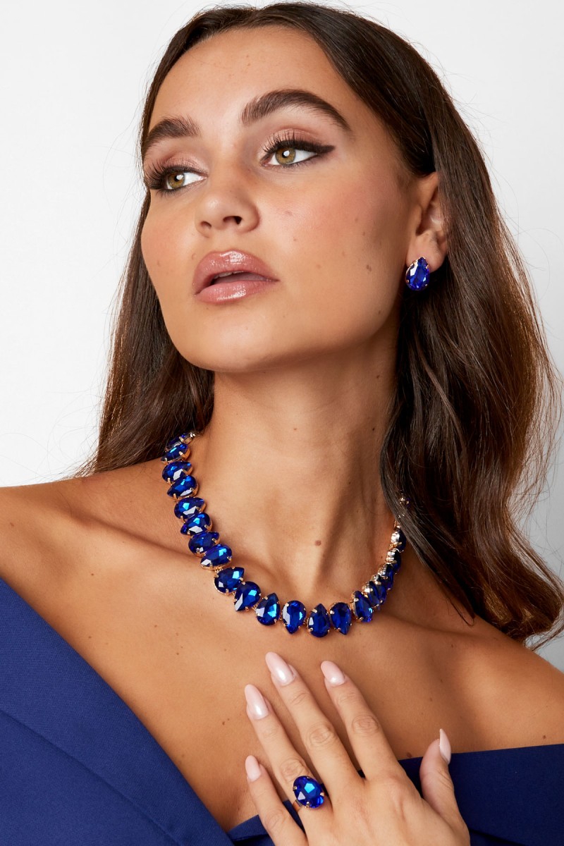Wauw! Shop deze prachtige kraal armband in de vorm van allemaal kraaltjes op een rij in de kleur blauw. De armband is perfect voor een chique gelegenheid en zijn superleuk te combineren met meerdere kralen sieraden. De armband is gemaakt van koper in combinatie met glaskralen en heeft een diameter van 7 cm. Shop de bijpassende ketting of oorbellen!