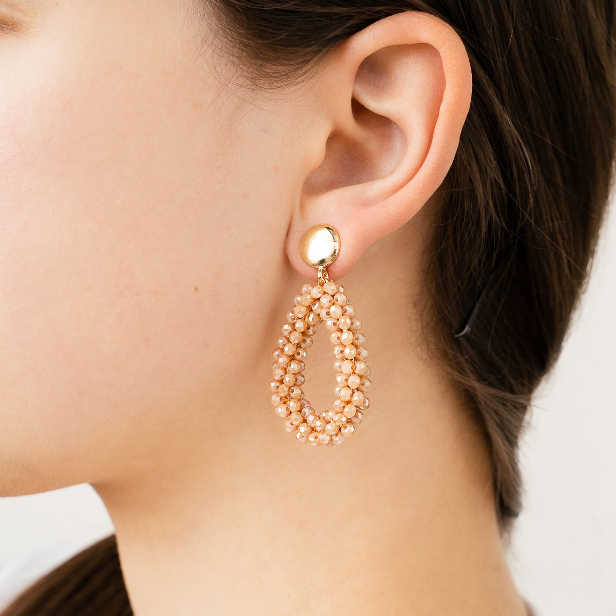 Get ready voor de feestdagen met deze sparkling oorbellen. Super mooie oorhangers, een gouden ronde robuuste plaat met daaraan hangers in druppelvorm voorzien van kleine light camel kleurende crystal beads. De oorbellen setting is gemaakt van stainless steel & nikkelvrij. De oorbellen hebben een totale lengte van 5cm en een breedte van 2.5cm.