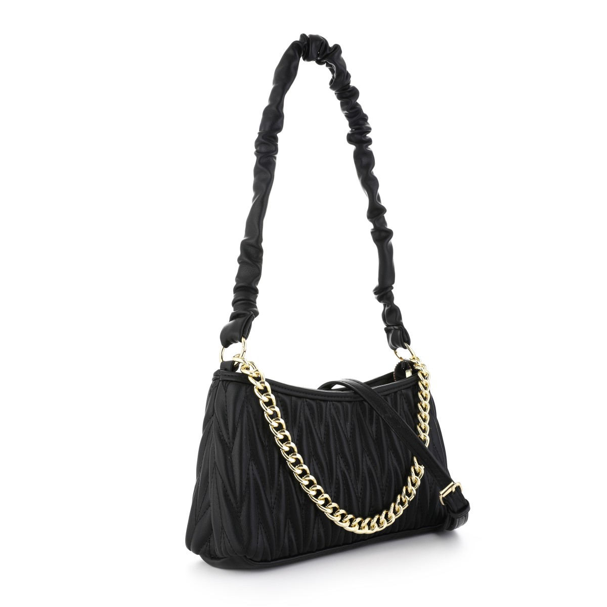 Deze compacte schoudertas is de perfecte mix van elegantie en functionaliteit. Voorzien van een verstelbare schouderband en een stoere metalen ketting, waardoor je de tas zowel classy als casual kunt dragen. Ideaal voor de feestdagen of een avondje uit!