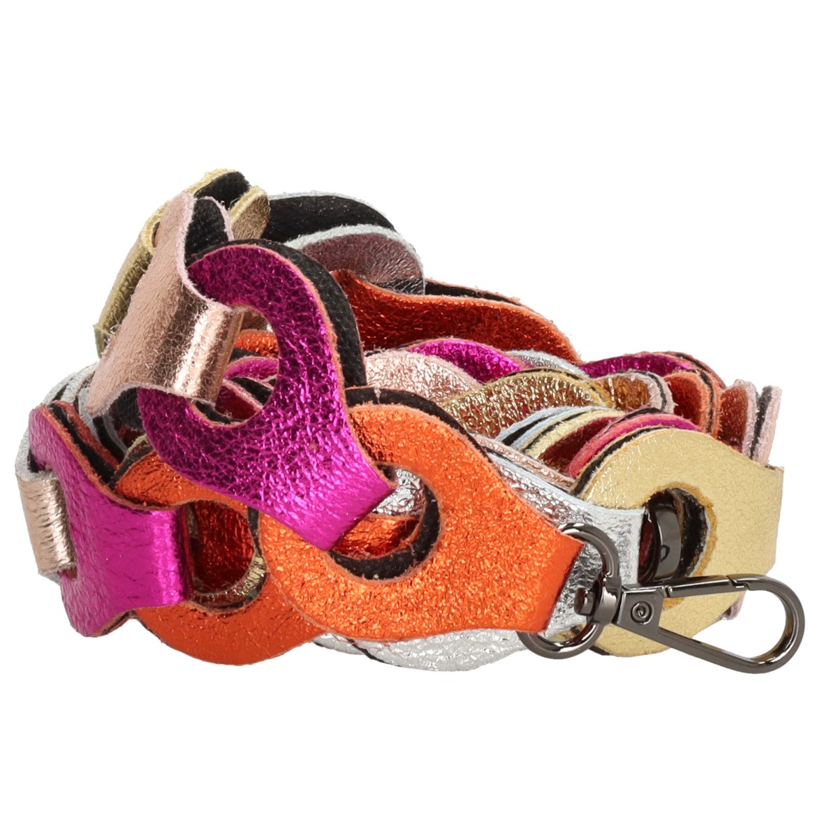 Waar de 'smalle' leren bagstraps veelal worden gebruikt als telefoonkoord, worden deze 'bredere' bagstraps met name gebruikt als schouderband voor een tas.